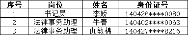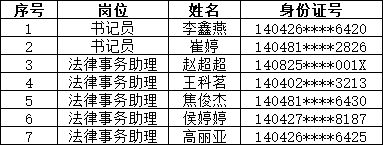根据威廉希尓指数500人力资源公司于2022年3月21日发布的《长治市黎城县人民法院2022年招聘司法辅助人员公告》的相关要求,入围体检及储备库人员名单如下: