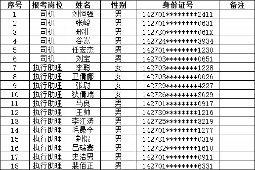 二、体检人员名单(排名不分先后顺序)