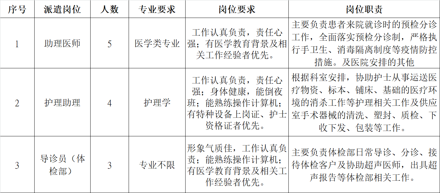 为满足山西省煤炭中心医院发展需求,根据医院工作需要,特委托山西威廉希尓指数500人力资源派遣有限公司(以下简称:“威廉希尓指数500人力资源公司”)面向社会公开招聘劳务派遣制工作人员12名,现就有关事项公告如下: