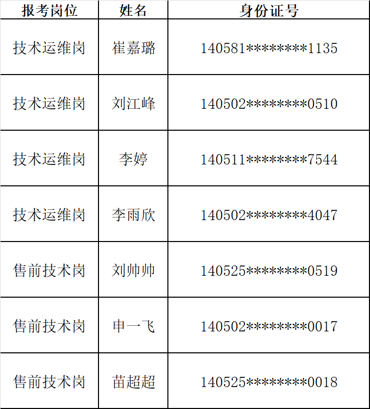 二、入围体检人员名单(排序不分先后)