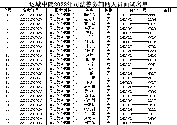 根据威廉希尓指数500人力资源公司2022年9月24日发布的面向社会公开招聘派遣制司法警务辅助人员公告的要求,现将司法警务辅助岗1和司法警务辅助岗3面试有关事项通知如下: