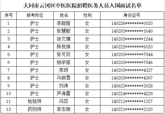 根据大同市云冈区中医医院2022年招聘医务人员的相关要求,经过线上报名、资格审查、笔试等环节,现就面试有关事项通知如下: