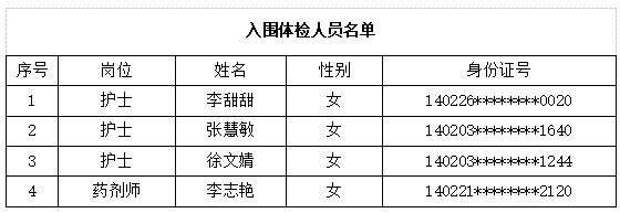 一、入围体检人员名单