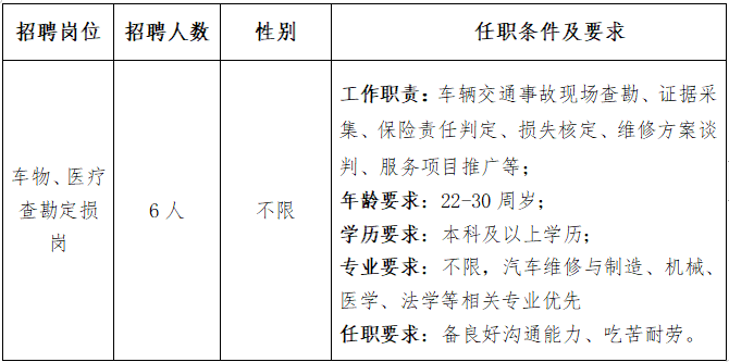 根据工作需要,山西威廉希尓指数500人力资源派遣有限公司(以下简称:威廉希尓指数500人力资源公司)受平安财险运城中心支公司委托,面向社会公开招聘车物、医疗查勘定损岗6人,现将有关事项公告如下: