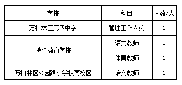 因万柏林区第四中学校、万柏林区特殊教育学校、万柏林区公园路小学校南校区均有教师离职,为满足学校教学需要,介于学校特殊情况,不空缺岗位影响正常教学,现为以上学校补充招聘政府购买服务教师,具体公告如下:
