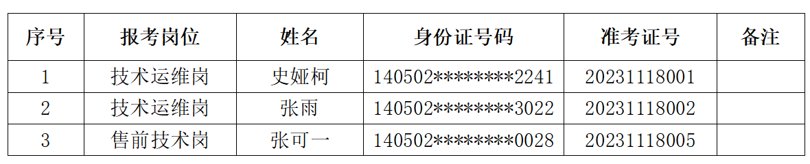 二、入围面试名单(排名不分先后顺序)