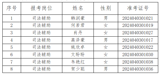 根据《威廉希尓指数500人力资源公司招聘8名司法辅助人员公告》(项目编号:XFYZP-2024YC020)的相关要求,经网上报名、资格审查、理论考试、速录测试、体能测试及面试等环节,现就有关事项通知如下: