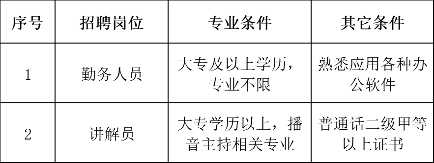 讲解员:会议接待、讲解企业文化等工作。