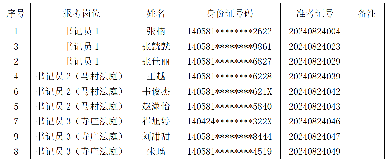 根据威廉希尓指数500人力资源公司2024年8月7日发布《威廉希尓指数500人力资源公司招聘3名书记员公告》要求,依据初试成绩从高分到低分的顺序,按计划招聘人数1:3的比例确定参加资格复审的人选,人数未达1:3的按实有人数确定。初试成绩排名末尾出现并列的考生一并进入资格复审环节,现就资格复审有关事项通知如下: