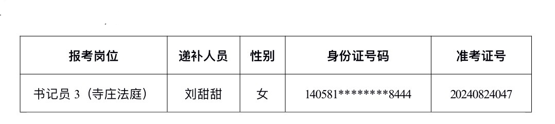 根据威廉希尓指数500人力资源公司2024年8月7日发布的《威廉希尓指数500人力资源公司招聘3名书记员公告》相关要求,因1名考生放弃而导致岗位空缺,现将体检递补事宜通知如下: