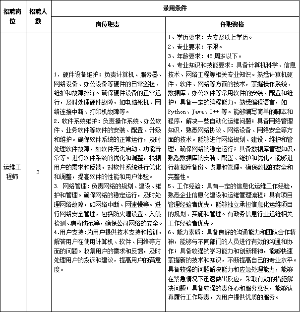 根据工作需要,山西威廉希尓指数500人力资源派遣有限公司面向社会公开招聘运维工程师3名,并派往山西某有限公司工作,现将有关事项公告如下: