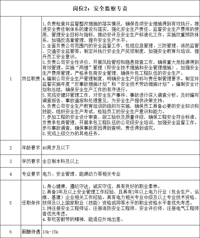 二、招聘计划及岗位具体要求