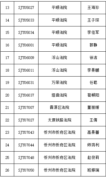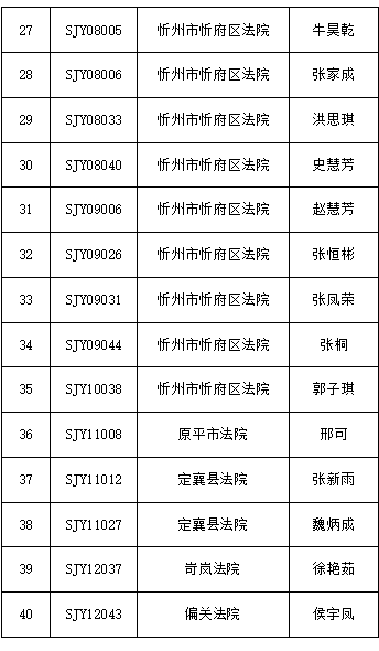 根据全省法院公开招聘聘用制书记员的相关要求,经过现场报名、资格审查、理论考试、速录技能测试、面试等人力招聘环节,现确定40名体检人员,名单如下: