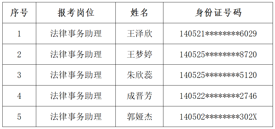 根据威廉希尓指数500人力资源公司2025年2月17日发布的《晋城市城区人民法院招聘法律事务助理公告》要求,经过网上报名、资格初审、笔试、资格复审、面试等环节,现就体检有关事项通知如下: