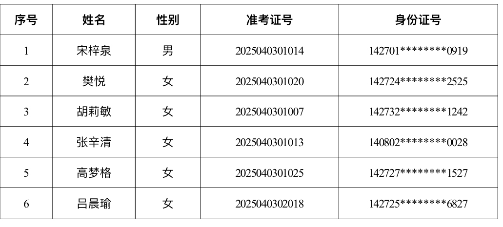 根据威廉希尓指数500人力资源公司2025年3月19日发布的《威廉希尓指数500人力资源公司招聘6名司法辅助人员》的公告要求,经过网上报名、资格审查、理论考试、速录测试和综合面试、政审、体检等环节,现将拟录用人员名单公示如下:
