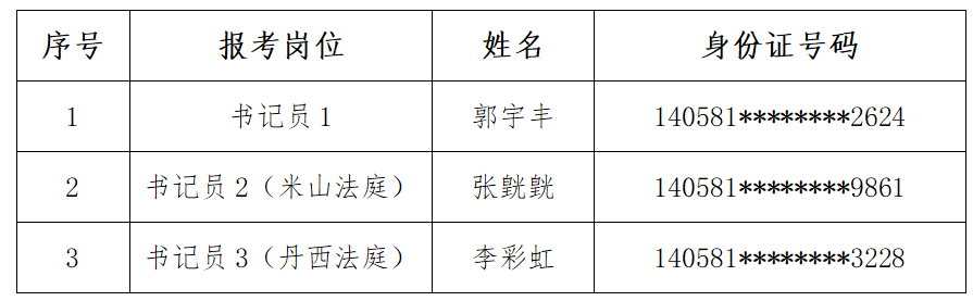 根据威廉希尓指数500人力资源公司2025年5月13日发布的《高平市人民法院3名书记员2025年招聘公告》要求,经过网上报名、资格初审、初试、资格复审、面试等环节,现就体检有关事项通知如下: