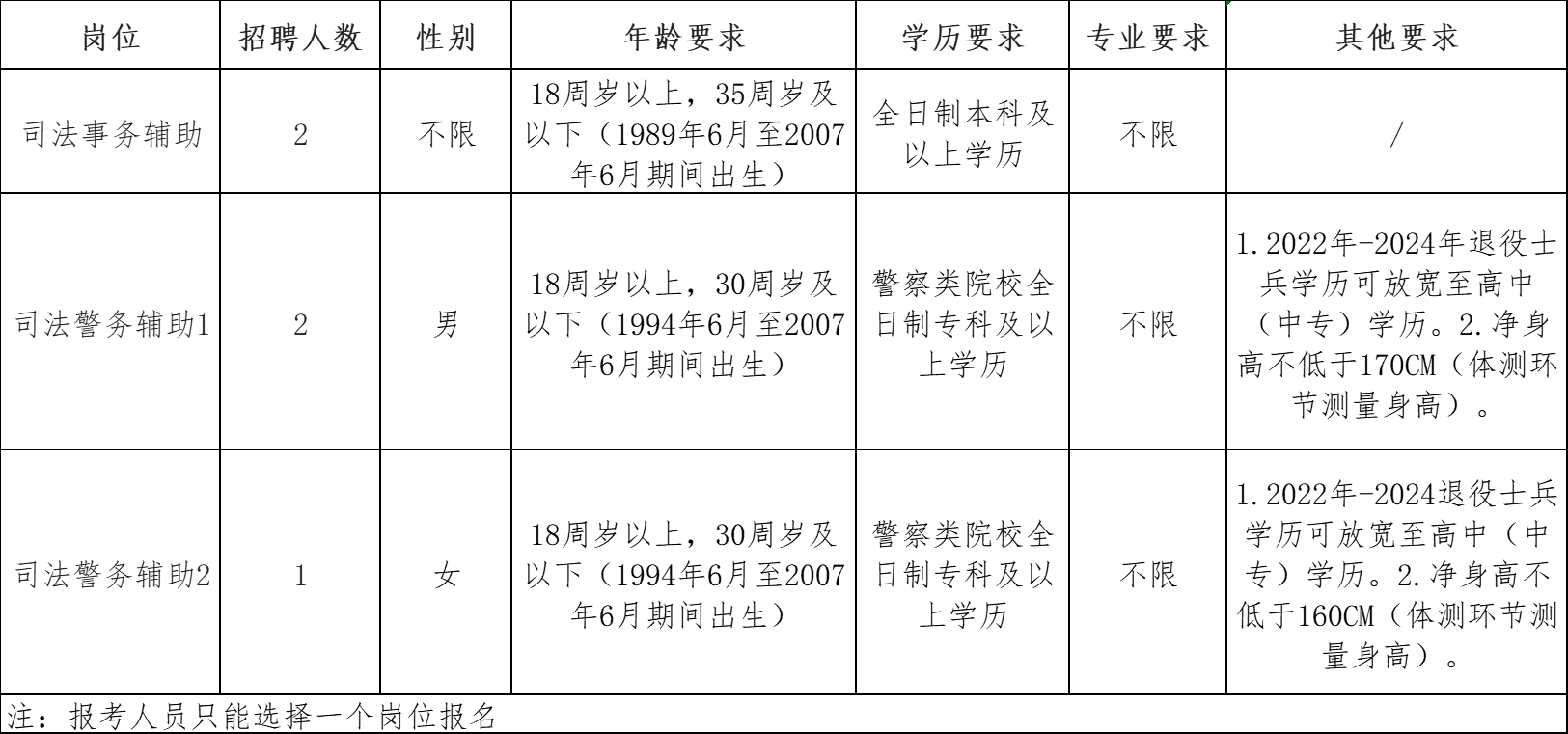 一、报名要求:司法警务辅助1岗位净身高要求不低于170CM。