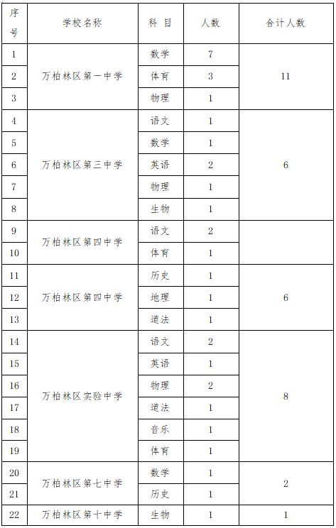 因万柏林区第一中学、万柏林区第三中学、万柏林区第四中学、万柏林区实验中学、万柏林区第七中学、万柏林区第十中学有教师辞职,为满足我区部分中学校教学需要,结合学校实际,现面向社会为以上学校补充招聘政府购买服务教师,具体公告如下: