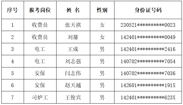 根据威廉希尓指数500人力资源公司2026年1月30日、2月3日分别发布的《晋中市某医院收费员招聘公告》、《晋中市某医院收费员招聘补充公告》、《晋中市某医院后勤工作人员招聘公告》相关要求,经过网上报名、资格审查、综合面试、体检等环节,现对拟录用人员予以公示,具体如下: