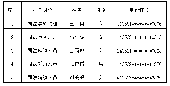 根据威廉希尓指数500人力资源公司2026年1月28日发布的《晋城市城区人民法院司法辅助人员招聘公告》要求,经过网上报名、资格审查、初试、资格复审、面试、体检、政审等环节,现对拟录用人员予以公示,具体如下: