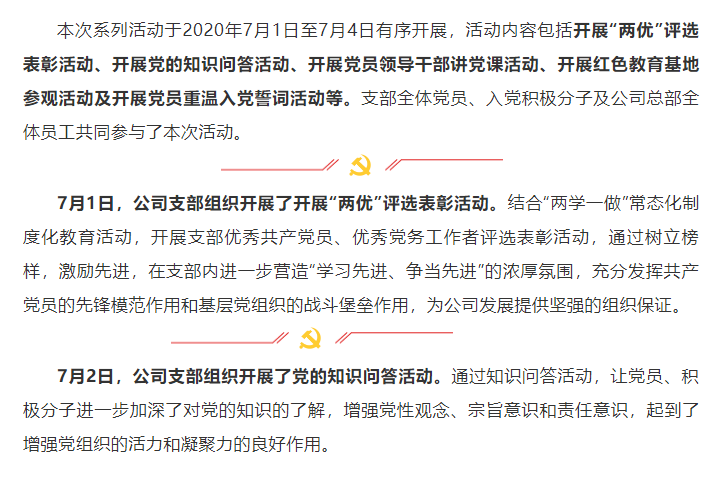 公司党支部开展纪念中国共产党成立99周年系列活动