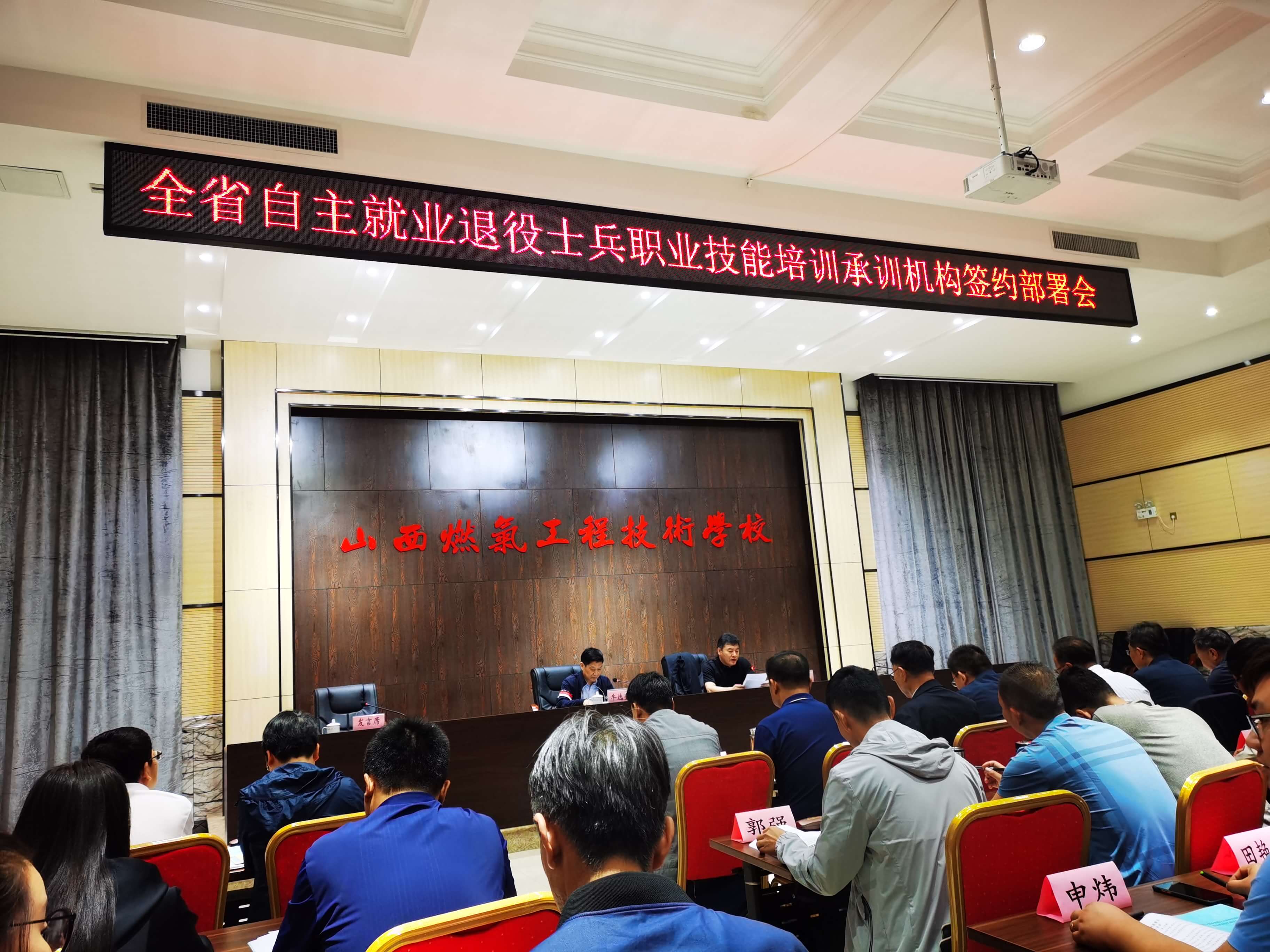2020年9月21日上午,由山西省退役军人事务厅举办的全省自主就业退役士兵职业技能培训承训机构签约部署会成功召开,我公司总经理李小芳女士、项目大区总监曹代平先生出席了会议,并与省退役军人事务厅签约退役士兵职业技能培训项目。