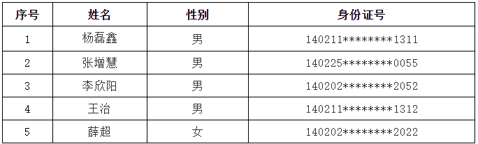 根据山西威廉希尓指数500人力资源派遣有限公司大同分公司招聘派遣制安保辅助人员的要求,经过发布招聘公告、现场报名、资格审查、体能测试、综合面试等人力招聘环节,现确定5名入围体检人员,名单如下: