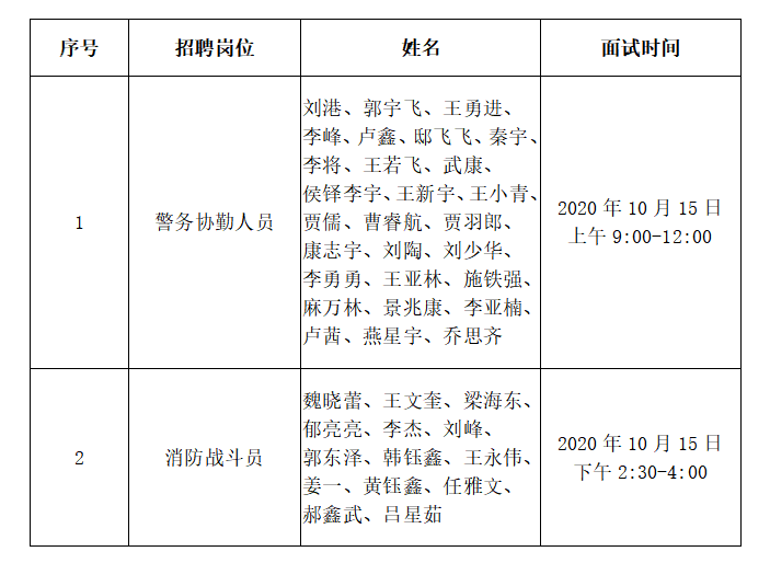 根据山西航空产业集团2020年公开招聘劳务派遣制工作人员的相关要求,现就消防战斗员和警务协勤人员岗位的面试有关事宜通知如下: