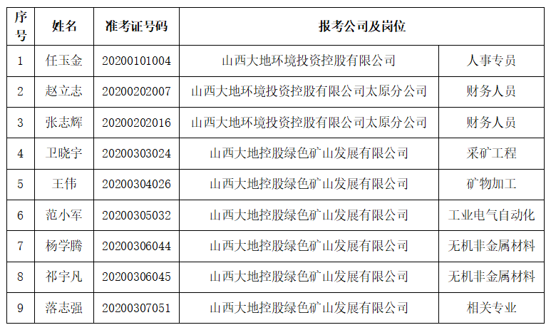根据山西大地环境投资控股有限公司及所属公司招聘工作人员公告要求,按照笔试和面试的综合成绩由高到低进行排序,现将体检有关事项通知如下: