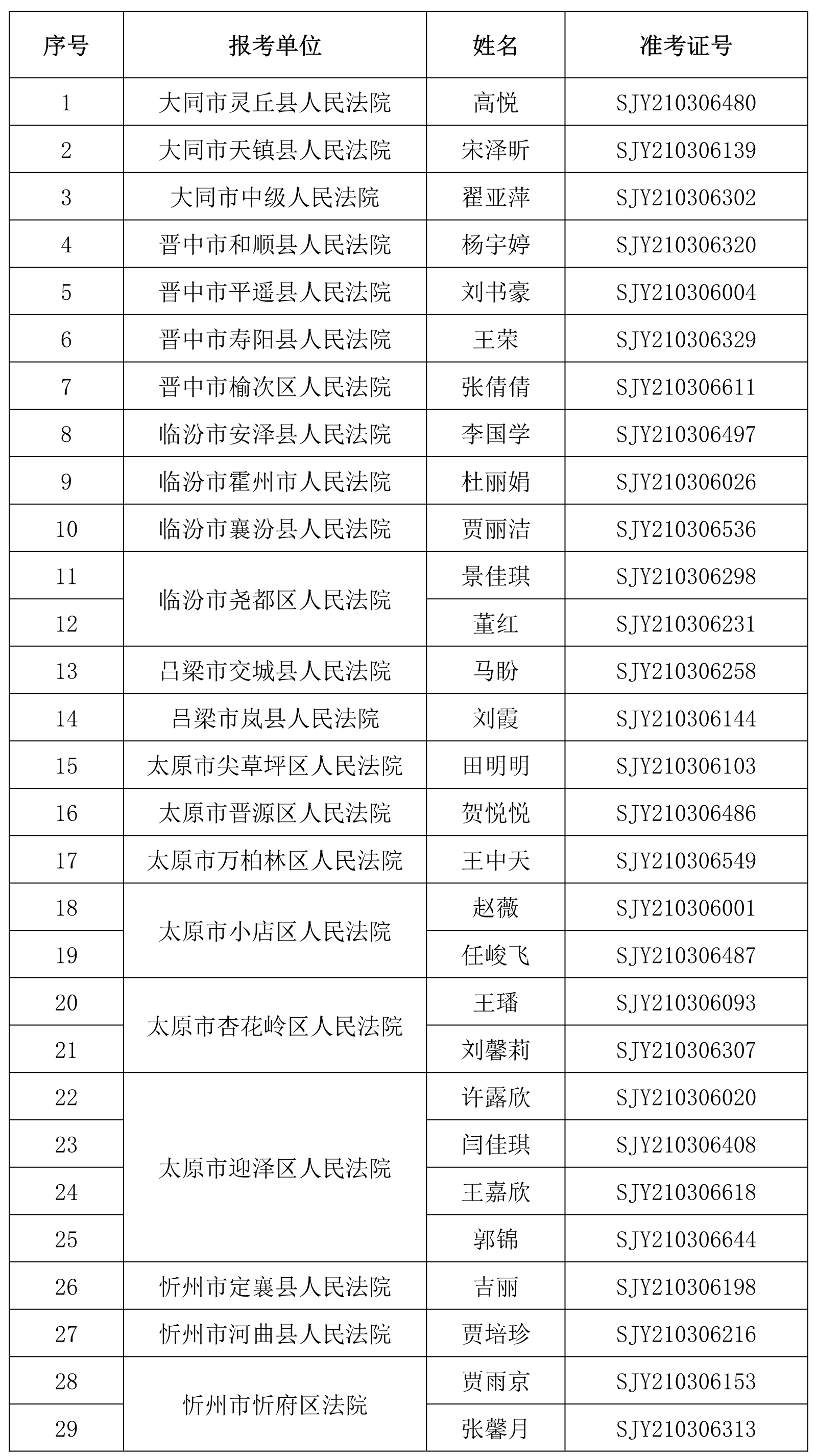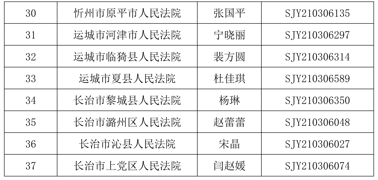 根据山西威廉希尓指数500人力资源派遣有限公司于2021年2月7日发布的公开招聘39名书记员的相关要求,经过网上报名、资格审查、理论考试、速录技能测试、综合面试等环节,现确定37名入围体检人员,名单如下:
