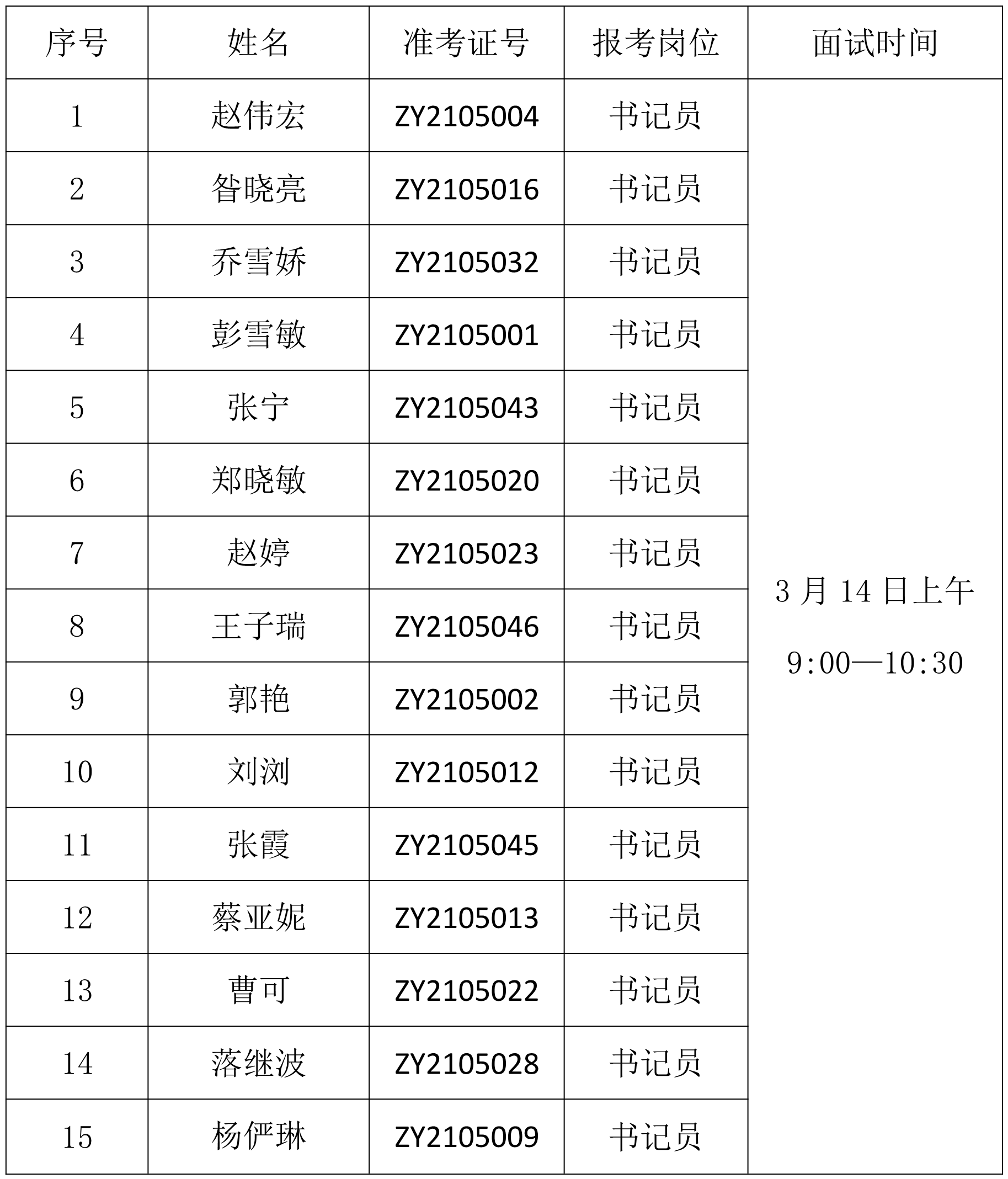一、面试入围人员名单