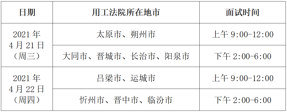 2、面试安排: