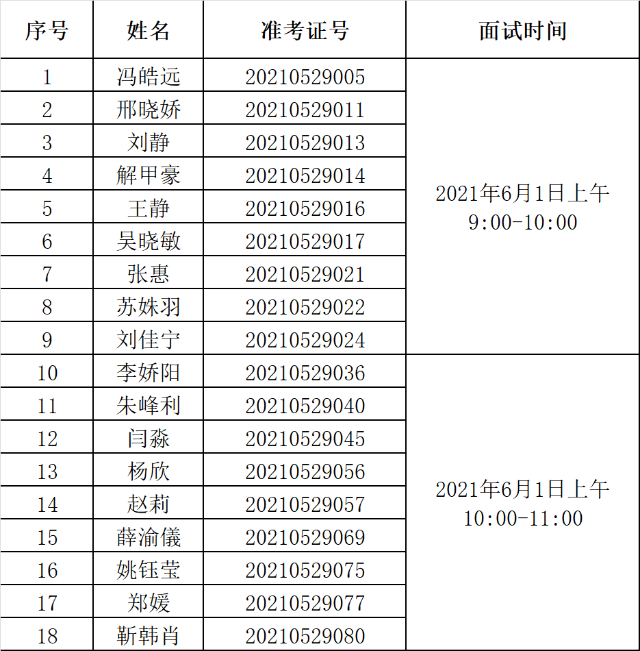 一、入围面试人员名单