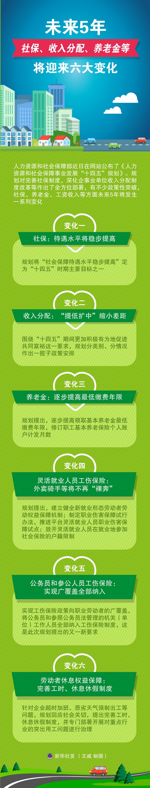 人力资源和社会保障部近日在网站公布了《人力资源和社会保障事业发展“十四五”规划》。规划对完善社保制度,深化企事业单位收入分配制度改革等作出了全方位部署,有不少政策性突破,社保、养老金、工资收入等方面未来5年将发生一系列变化。
